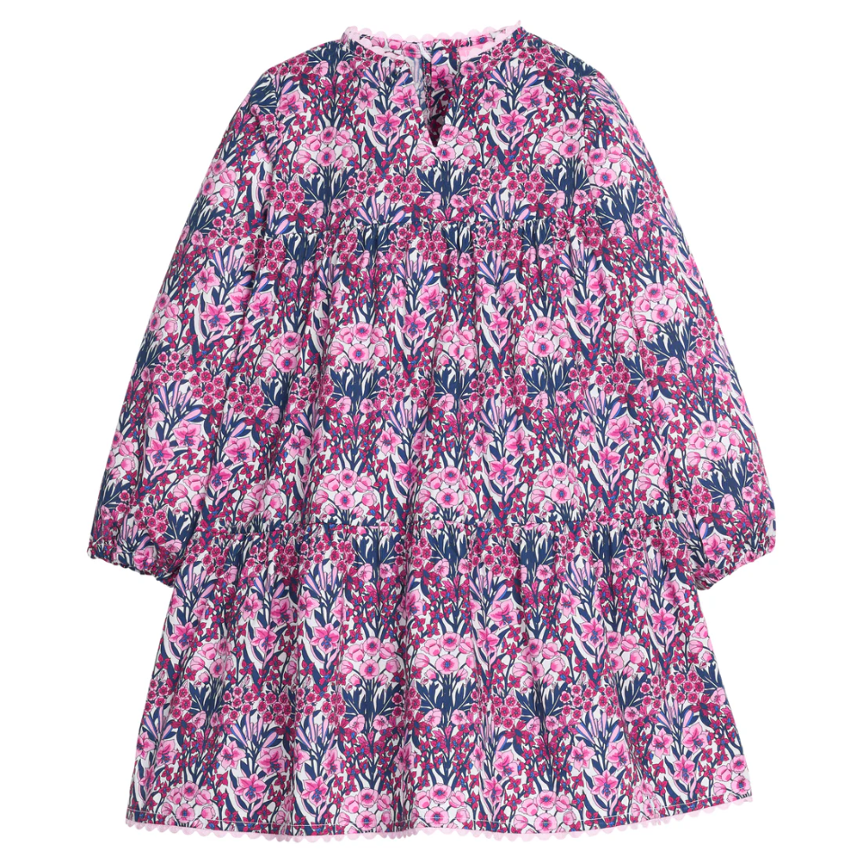 The Positano Dress is back for fall in a long-sleeve style! Designed in a bold pink and navy floral, this dress features ric-rac trim along the neckline and hem, and elastic cuffs for an easy, relaxed fit. Finished with a tiered skirt for extra movement, it’s a playful yet polished piece she’ll wear on repeat all season long!