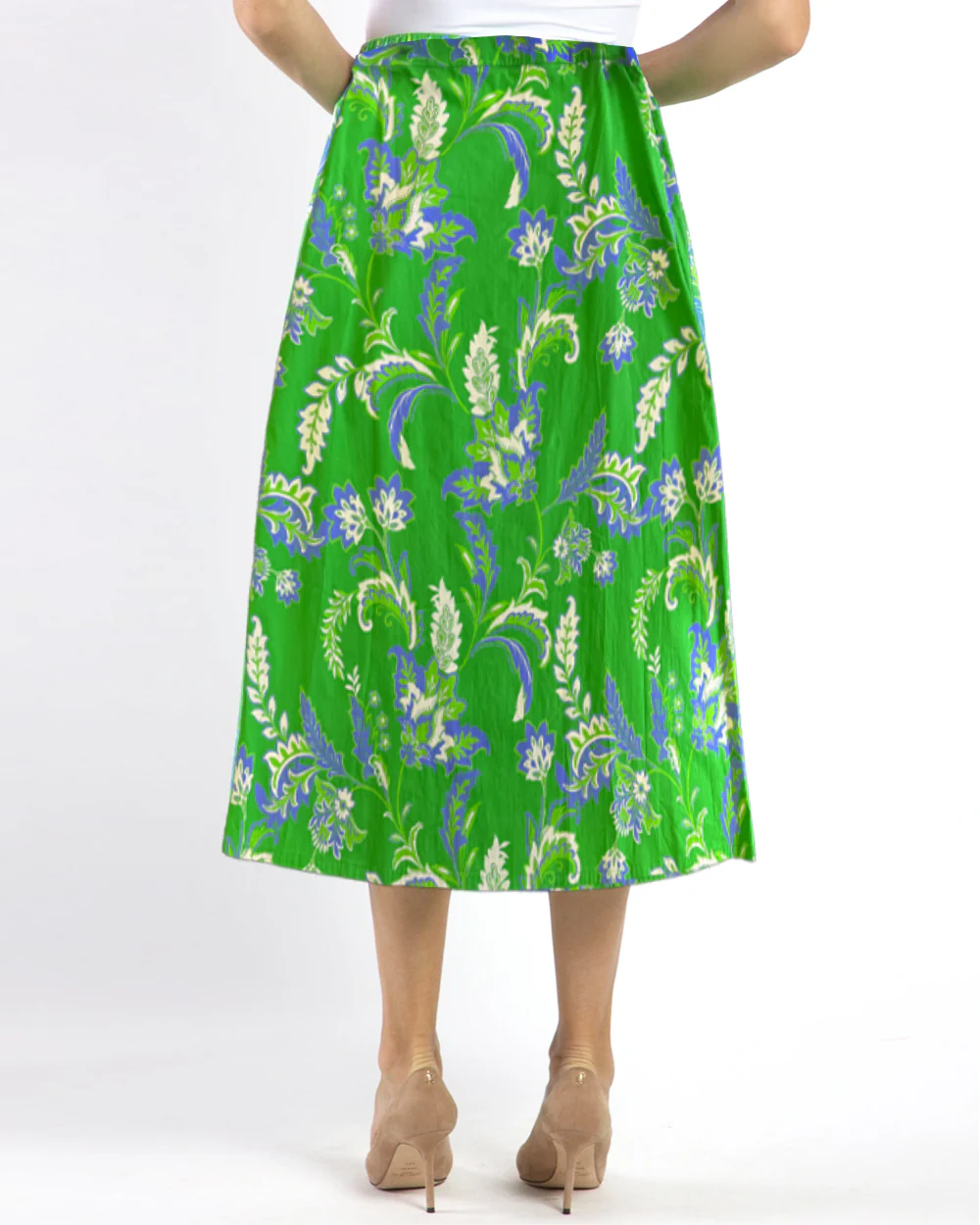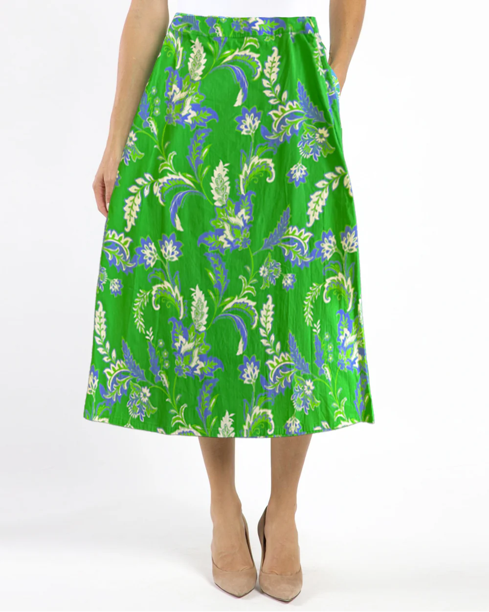 Jeanette Skirt Stretch Poplin in Feathered Floral Grass