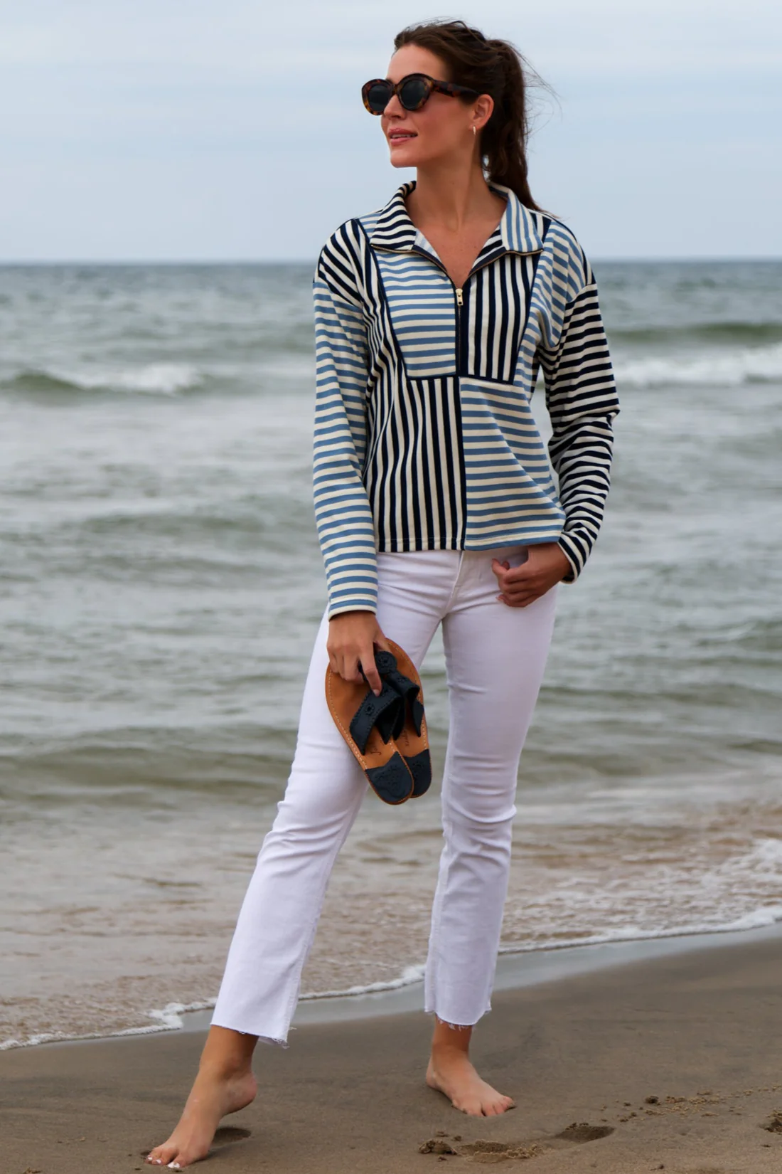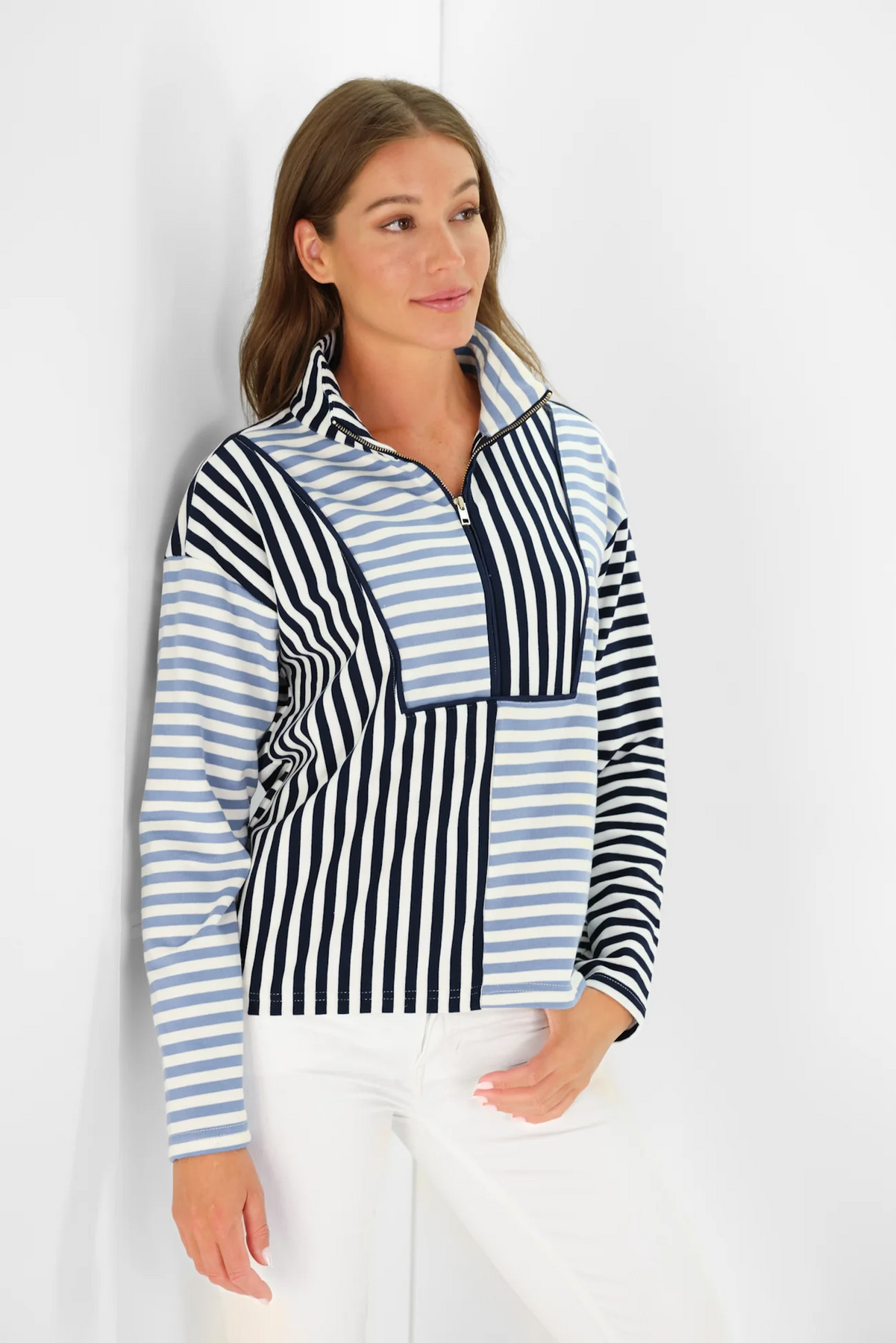 Kathryn Quarter Zip in Navy and Blue Stripe Mix