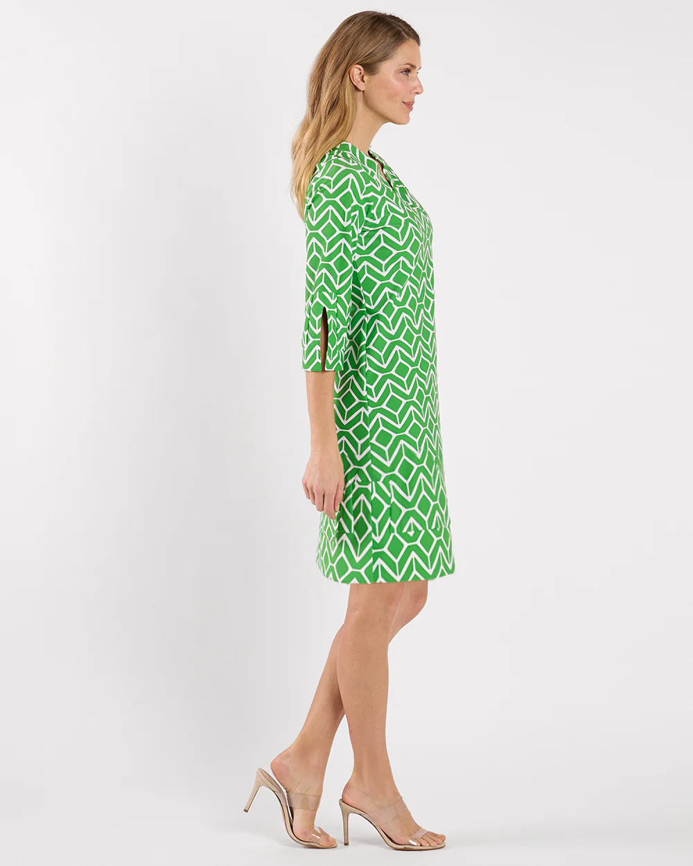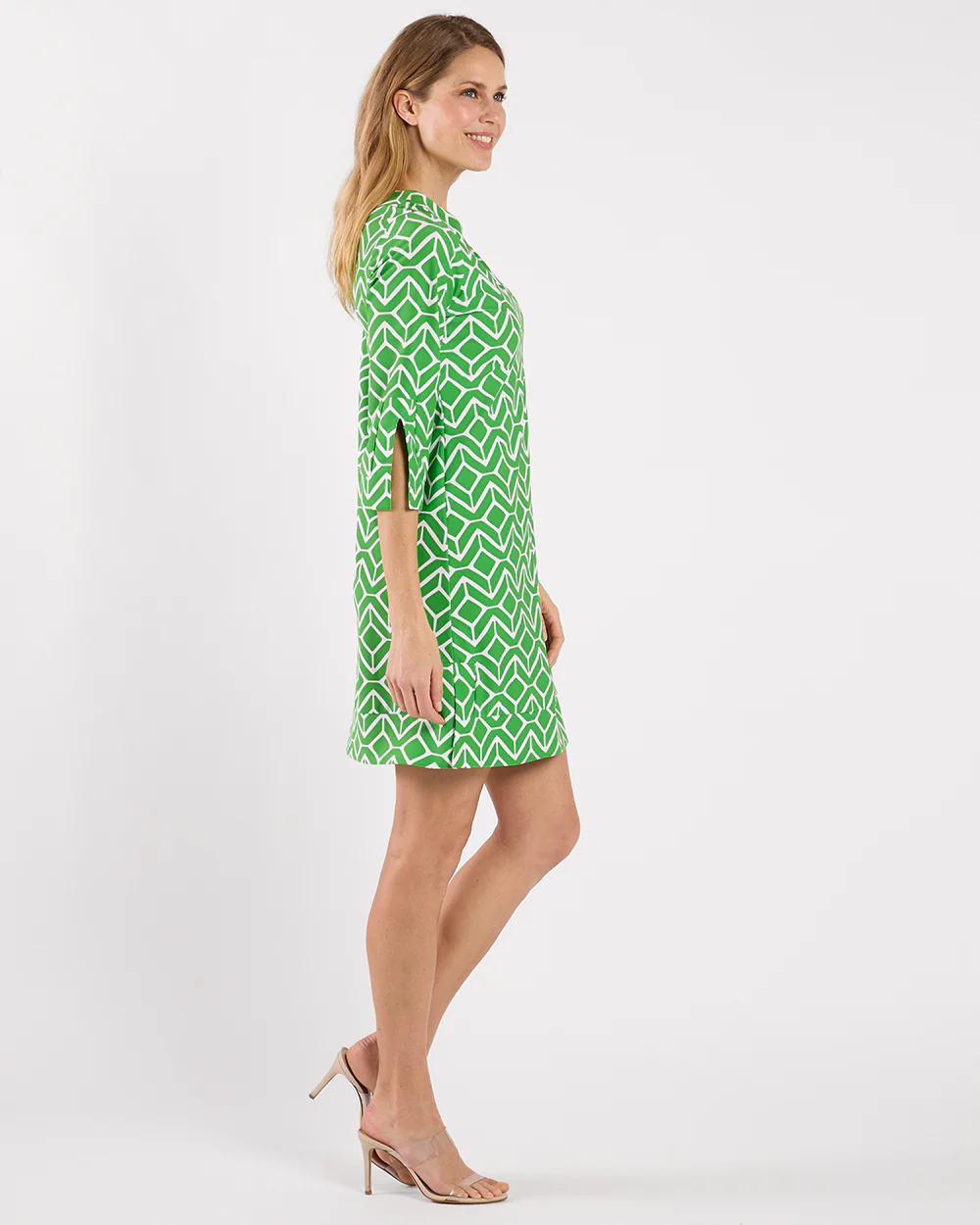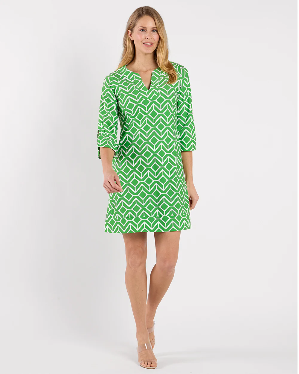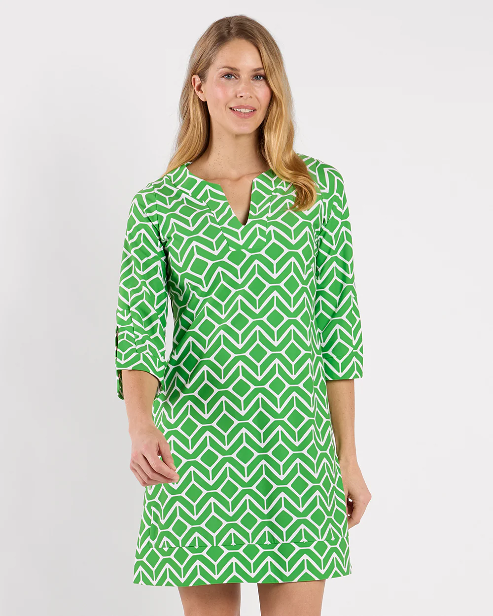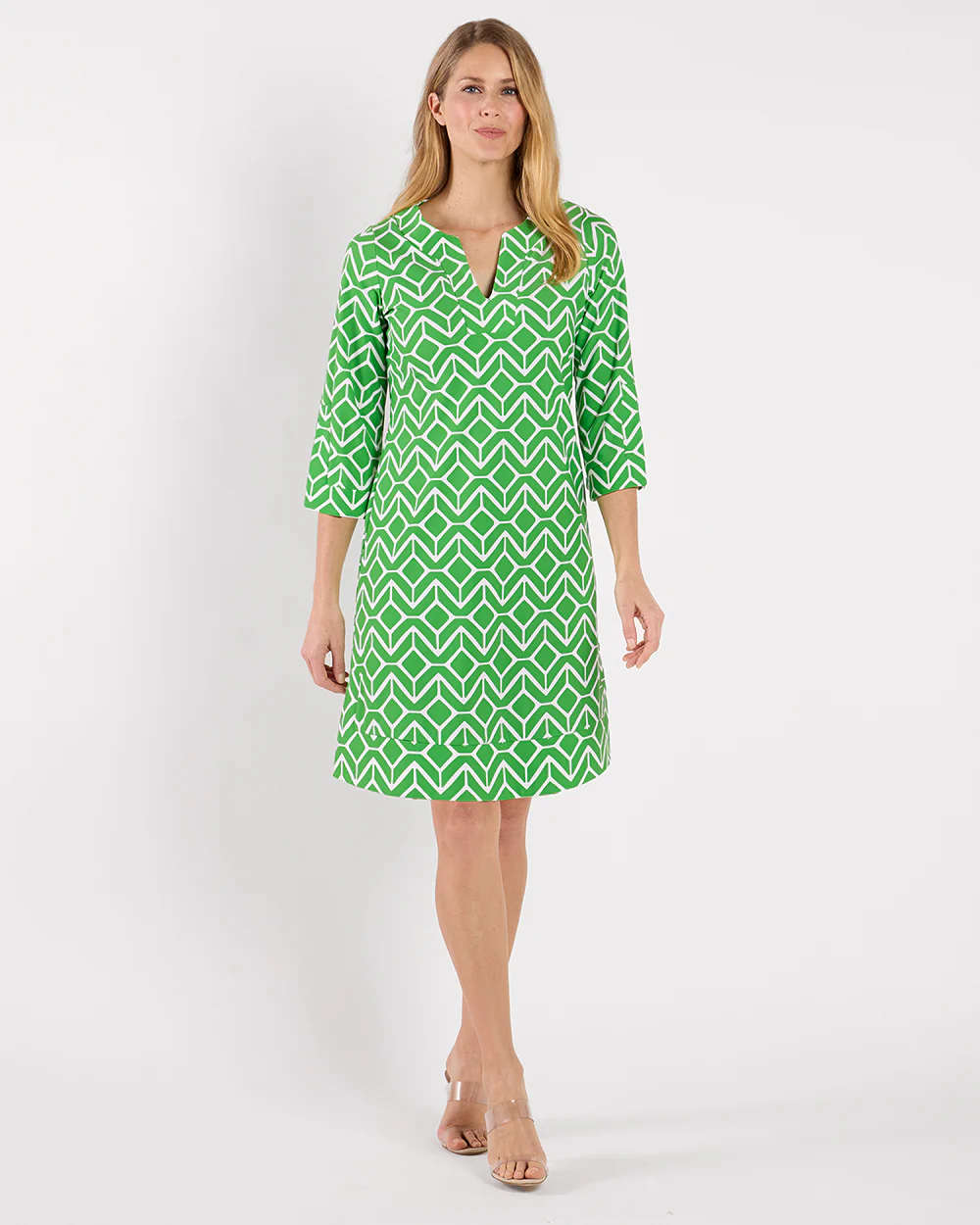 Megan remains a top seller for a reason – versatile, on-trend, and eternally chic! Featuring a V-neckline, ¾ length sleeves, and a subtle A-line silhouette with fashionable slits on the sleeves and hemline. It effortlessly transitions from day to night. Whether for everyday wear or travel, this dress is the perfect choice for any occasion.