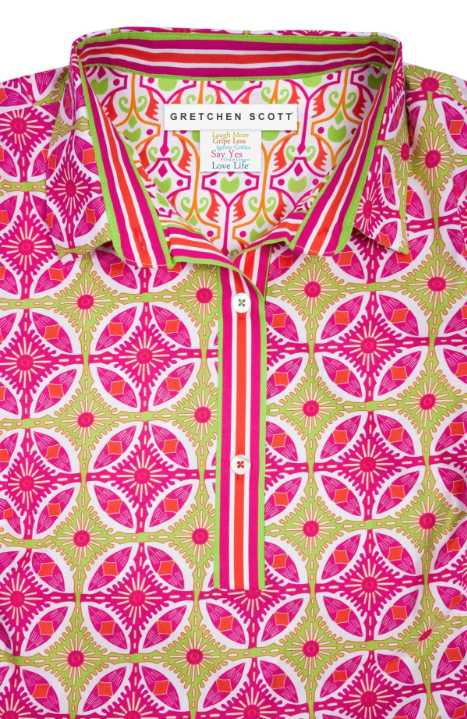 • Coordinating Contrast Banding: Front Placket/ Side Slits/Turn Back Cuffs