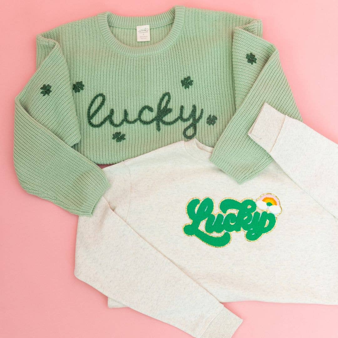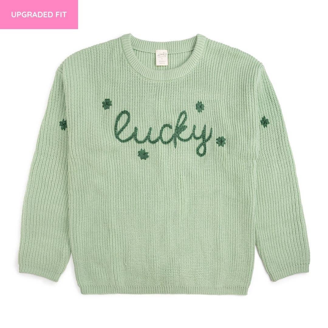 Twice the charms, twice the fun! Get ready for a lucky day of mischief in this stylish, hand-embroidered 'lucky' Mama sweater that perfectly matches your mini-me's adorable version. You'll be the cutest pair spreading Irish cheer this St. Patrick's Day! Features: *Sweater Color: Mint Green *Embroidery Color: Sage Green *Material: 100% Acrylic *Fit: Moderately oversized *Care: Hand wash only, do not iron, tumble dry, bleach or dry clean Each sweater is packed with love in our hometown warehouse.