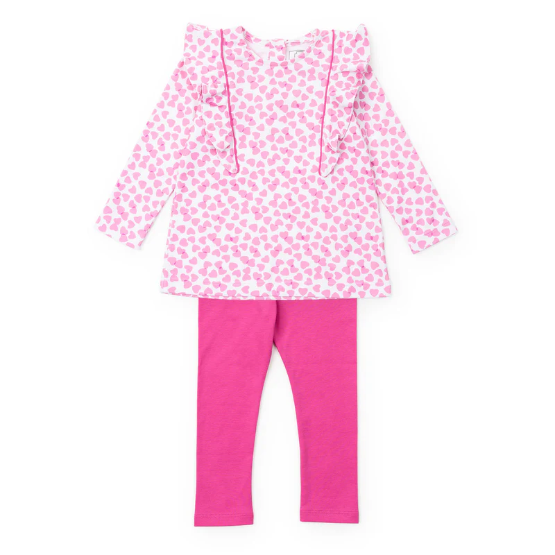 Olive Set Girls' Legging Set - Confetti Hearts Pink