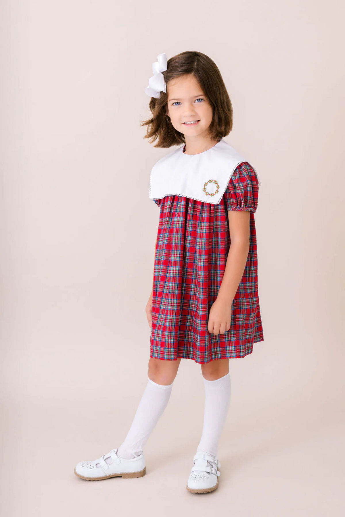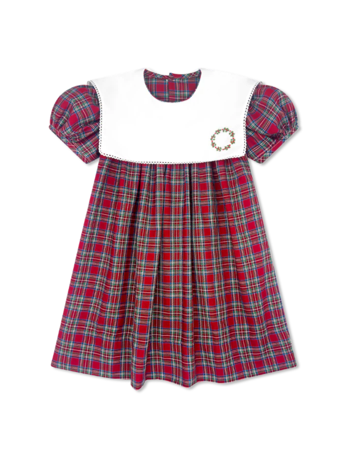 Sweet and timeless, the Hope Chest Dress is crafted in classic Woodstock Plaid and features a crisp white square collar with delicate wreath embroidery. Designed for little girls, this Hope Chest dress is perfect for holiday gatherings, family portraits, or special occasions.