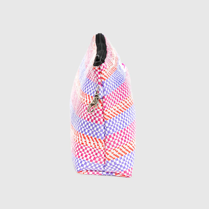 MADE TO TRAVEL: OUR WOW-FACTOR WOVEN FABRIC. This lightweight zip-shut woven pouch is perfect for makeup, tech, meds, and more.