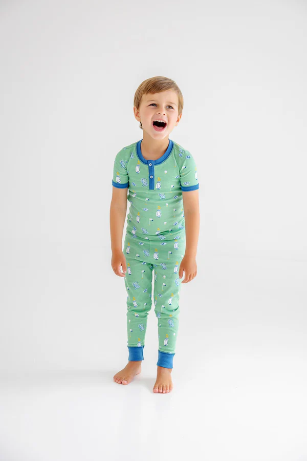 Sleep soundly in our Sutton's Short Sleeve Set featuring the charming Clubhouse Couture print with Wood Boat Blue, designed for peaceful nights. Crafted from premium, ultra-soft fabric with short sleeves and coordinating pants, this cozy two-piece set keeps your little one comfortable all night long. A bedtime favorite that brings timeless style and comfort to every sweet dream.