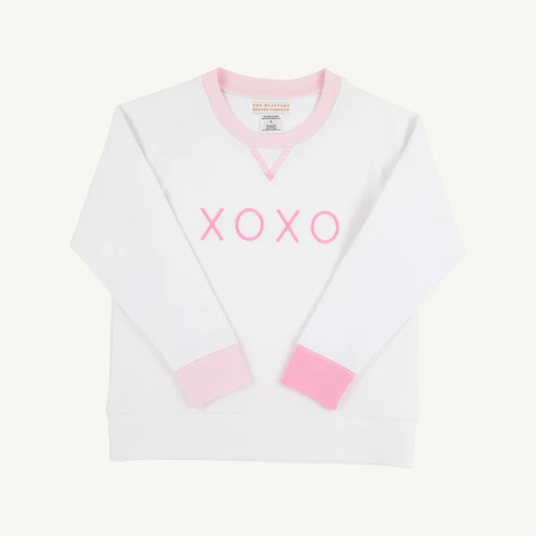 Cassidy Comfy Crewneck - Worth Avenue White with Palm Beach Pink & Hamptons Hot Pink XOXO Applique